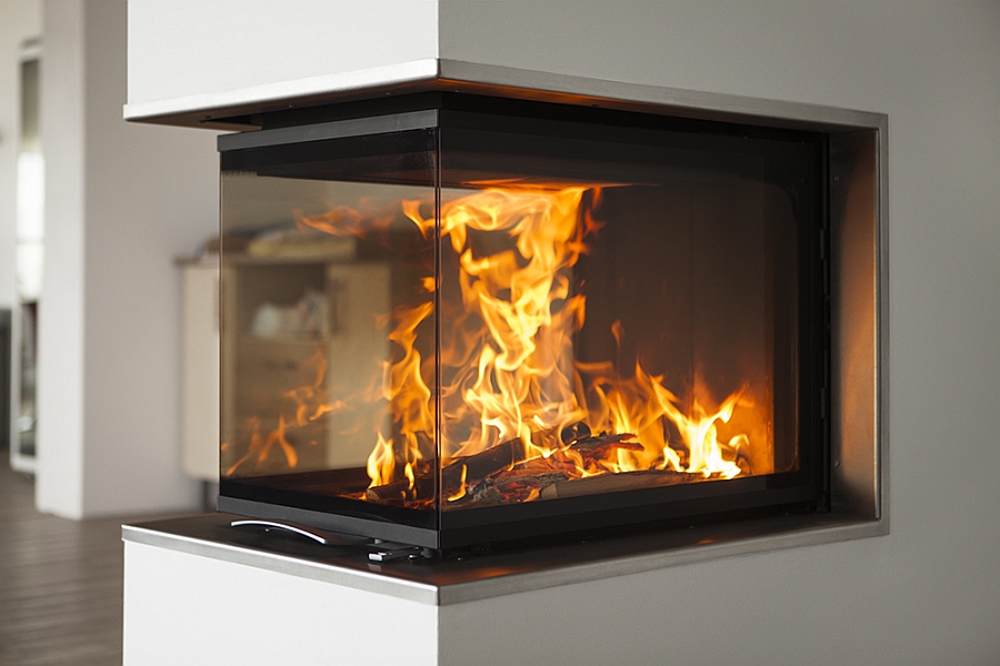 Tři prosklené strany otevírají perspektivy 180-ti stupňového pohledu do ohně. Vzhledem k velké ploše skla a jeho výrazné tepelné ztrátě není ohniště vhodné k instalaci šamotového tahu.